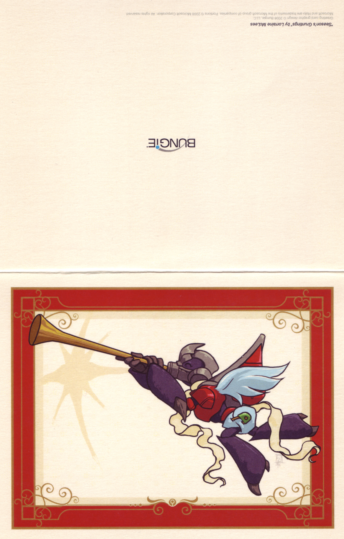 Each year Bungie puts together a unique holiday card for family and friends. This year, Lorraine McLees and her Creative Services Team put together the awesomeness you're about to see below. Since we're all friends here, we figured you should get a copy in your digital mailbox. Scroll down for a sweet downloadable version you can print and send out to all the Halo fans you know and love. Or maybe just to freak your grandma out a bit.