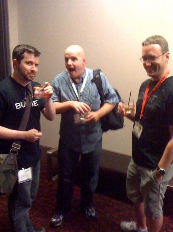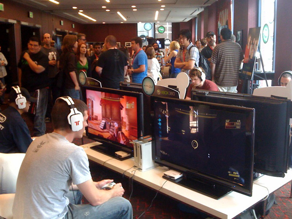 Bungie Weekly Update: 07/24/09Posted by urk at 7/24/2009 4:12 PM PDTA fanatical orgy of super nerds descended upon San Diego this week to get their clammy hooks on all manner of geeky, cross-genre goodness. Our boys Brian and Bertone have been busy wading through the body odor to offer up free samples of Halo 3: ODST Firefight (and mopping down each gaming station's controller with industrial strength antibacterial wipes). Good times. Though Brian's absence from the community corner of the studio means I'm left to man the fort all by my lonesome, he hasn't gone completely dark. Surrounded on all sides by a teeming mass of pimpled manflesh for sixteen hours on Thursday, and armed only with his fancy pants magic phone and his hotel room's blazing fast broadband connection, Brian did his best to sum up the experience with a handful of snaps and a small pile of words. "Yesterday we enjoyed a quaint afternoon with upwards of 100,000 other people who all descended upon the San Diego Convention Center for the annual Comic-con. Paul Bertone and I brought ODST along and offered fans a chance to get some hands-on time with Firefight inside the Xbox booth. Apparently, judging by the constant lines and crowds, a lot of people like Halo. Who knew? Throughout the day we had ten minute games going on Crater and Security Zone (both maps initially revealed at E3 earlier this year) and the mob never dipped below a one hour wait. The Con itself had record crowds and venturing anywhere outside the safe zone of the booth was a risky proposition. Wading through the crowd just to get a drink easily became a thirty minute commitment, minimum. Thankfully we had some friendly support staff who were able to maintain our perimeter as seven people at a time trickled in to get up close and personal with our new cooperative game mode. Lucky (or perhaps unlucky?) fans got a chance to climb up onto the stage and play alongside Paul (and later with Bungie artist Tom Doyle) and get a small prize. Naturally much trash was talked but nobody was able to live up to their claims of beating Paul at his own game. Overall it was a fun, if short lived, experience and we got to meet a ton of great fans along the way. Sadly, in barely the time that elapses in-game from the Rookie's crashing into New Mombasa and then waking to emerge from his drop pod, our time at the Con was over. Later in the evening we setup shop again across the street at a mixer event hosted by Xbox and the cast of the LIVE show, "The Guild." For many more hours we hosted four firefight stations for media and fans alike amidst a nice offering of other upcoming Xbox titles and free drinks. Thanks to everyone who stopped by to say hi and show their support. I only wish it could've lasted longer. Hopefully we'll see more of you at Penny Arcade Expo later this Summer. For now, I'll leave you with an assortment of photos from yesterday's events (taken on a phone for extra gritty realism)." ![]() Ensconced ![]() Nobody puts Baby in a corner! ![]() The long and winding Firefight road. ![]() Head to Head ![]() Oh, the humanity! ![]() Prepare to Cosplay ![]() Herding Nerds ![]() Chiefbombed ![]() Doyle: BFF ![]() VIP Loungin' ![]() Bungie Street Boys (and Friends) ![]() Halo Legend ![]() The VIP room gets bigger, better, and more badass. Halo in RetrospectOn Tuesday we commemorated the original announcement of a little game we like to call Monkeynuts. You might know it a bit better as Halo. If you want to turn back the clock and relive the halcyon days of yore, slip into your favorite pair of Capris and scope out the archival footage of Jason Jones unveiling what was 1999's New Hawtness. We've got the decade old unveiling all up in our YouTube channel. And for all the jerks calling us out in the comments section for being "name wasters" even though we've already linked to that space before for our sadly defunct B.U.N.G.L.E. Pro™ project, yeah that's our channel. Now who are the ones who are the wasters? Huh? It's you. That's right, you are the waster. Where was I? The Macworld 1999 footage obviously isn't exactly new, as you may have noticed by the fact that it's footage from Macworld 1999, but since the handful of copies we could dig up online were all low resolution affairs loaded with unappealing artifacts—all smudgy, blocky, and gross—we figured some IQ improvements were in order for this small snippet of studio treasure. Our Visual Design team also crafted a ten year encapsulation of Halo's past and present that we hear brought delicious tears to many a fan's eye. You should give it a watch as well. You'll laugh, you'll cry, you'll see Marty in a wig and dress. Originally aired on a ginormous theater screen in front of a live studio audience as part of our own internal Bungie Day festivities, we figured it would be a real shame if this slice of studio history went unshared with our Seventh Column peeps. The streaming version already went live this past Tuesday, but if you've yet to get a good look at it we've also prepped a spiffy 720p version for your viewing pleasure. Both flavors linked below. Right-click and Save As, please. Halo, Ten Years - WMV 720P Version [341MB] Halo, Ten Years - WMV 360P Version [56 MB] We've said it before and we'll say it again, thanks for playing. And please stop sobbing. It's getting embarrassing. You Know the MusicWhere the Hell is Matt? Turns out he's right here. Well, he was. Wonder if he bailed because I was all up in his mug telling him to bust a move? Dance, monkey! For the uninitiated, Matt's the Darwinian Tubercle rockin' former game developin' dude who travels the world comically undulating in front of his camera. His global gyrations have proved to be so entertaining that he's now operating his own well-traveled website and renting out space for millions on YouTube. He's a pretty popular dude. As Pete Parsons put it, "Matt has more fans than we do." It's true. His videos have something like eleven-centillion views. He's