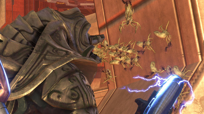 Bungie Weekly Update: 08/07/09Posted by urk at 8/7/2009 4:04 PM PDTThe sweltering and sweaty state of affairs in Sea-Town last week have been swept away by a new weather system and we're once again returned to the gray-skies and moderate temperatures us peeps in the Pacific Northwest have learned to pretend we love. There's no rain just yet, but steaming hot coffee is back on the morning menu, more lunch dates are occurring outside of a single block radius, and the local meteorologists have finally come out of their makeshift bunkers. And yup, I've put my clothes back on. Feels good. And while Sketch began last week's update outing by lamenting the lack of content contained therein, I thought it was pretty stacked considering I wasn't at the office to actually make any of those words magically appear on your monitors. Not to mention, you got a good, high resolution look at Alpha Site (screenshots that are now packed into their permanent home in the Halo 3: ODST Field Guide). This week, using a couple of those same screenshots for context, we're going to step inside the ONI office space for a brief spell, brush past the failed security systems, and give you an even better look by way of wordplay. In fact, let's go ahead and do that now. Alpha Site Declassified![]() Out of Order The ominous onyx building ONI calls home in New Mombasa's Alpha Site sits perched atop a space you should already be familiar with. You got a good look at the climb in our Security Zone layout some time back. But what you didn't see was what was just beyond the walls of Security Zone's swank lobby load out. In fact, when you first set boots inside of Alpha Site you begin in that exact same hallway, only now a security gate blocks the way back, leaving only one place to go: dead ahead. Moving forward, you sweep into the stark interior space, greeted by electronic kiosks that provide a scrambled overview of the layout and direct you to check all your bags and step through the security terminals before proceeding to your desired destination. You can go ahead and ignore the warning. The security systems seem to be offline, and besides, you have more pressing things to worry about than the loose change jingle jangling in your pocket. Depending on whether you dropped in stage left or right, you'll have instant access to either a Shotgun or a Sniper Rifle, both latched into place on the wall straight ahead. Snag 'em and press into the interior until you'll come to a space you'll be spending quite a bit of time defending while you're Oscar Mike in Alpha Site. ![]() Close Quarters This central lobby is bracketed by three out-of-order elevators and ultimately bifurcates into two slightly stepped, and very cramped corridors. These short chutes lead up to more columned lobby space, memorials dedicated to ONI personnel and UNSC soldiers who gave their lives in the war against the Covenant, and the mission's third power weapon, found mounted on the back wall, the Rocket Launcher. By now you should hear the whine of incoming Phantom engines as they descend upon the open air platform to drop their deadly payload. Pay attention: this is where the overwhelming majority of the Covenant forces are going to touch down. Save the rockets though; the first batch of bad guys won't require that kind of firepower. You'll want to whip out that SPNKR later. Right now, you'll probably have better luck if you double back and take up a defensive position in the central lobby space. It's a good place to lie in wait. To help us figure out where the other good spaces to hold up are, and to also supply us the how and the why Alpha Site is set up in just the way it is, we've recruited the King of Fun, Dan Miller, into our squad this week. He's not green or very, very mean, but he does enjoy a bro hug once or twice a week and he spent a fair share of design time working on tuning and tweaking Alpha Site. Q. The ONI building's interior provides for some up close and personal combat. What steps did you take to make sure that players won't feel cornered and overwhelmed from Wave One on? A. The Oni Interior game flow actually went through a couple of incredibly different iterations before we settled on the current setting. What we finally decided upon was using the center part of the interior as a cross-roads choke point and allowing the Covenant to enter into the space on one side of the map and have the player spawn on the opposite side. This gives some flexibility to players so they don't feel completely cornered or trapped. Q. The site lines into enemy insertion points are also somewhat more focused than they are on other missions. Was Alpha Site designed so players can hold up and let the enemy come to them? Does that lead to camping? A. Yeah, that originally was a bit of a concern that players would be able to just camp the two known spaces, but we put some surprises in to make sure that won't be a problem. ;) You can be as aggressive as you want to be. I've found I survive longer if I let the enemies come to me. Q. I find I survive longer if I let the enemies come to other players and then steal kills from long range. It's a sad and pathetic display. On display in Alpha Site is quite a wealth of power weapons (considering the size of the space overall). Seems like there's a really great opportunity for players to hunker down and pile up the points. Is that something you think about when crafting the various Firefight missions? A. For the most part, Firefight spaces have the same amount of power weapons. One thing I've found really cool about Firefight is that because the skulls unlock in a certain order, it stretches the value on the sandbox weapons across the spectrum. Sometimes a Rocket Launcher or a Sniper Rifle just won't get the job done in later rounds, and even the Plasma Rifles and Plasma Pistols prove to be gold down the road. It's pretty cool because in marathon Firefight sessions, I find myself using and valuing all of the weapons at vari