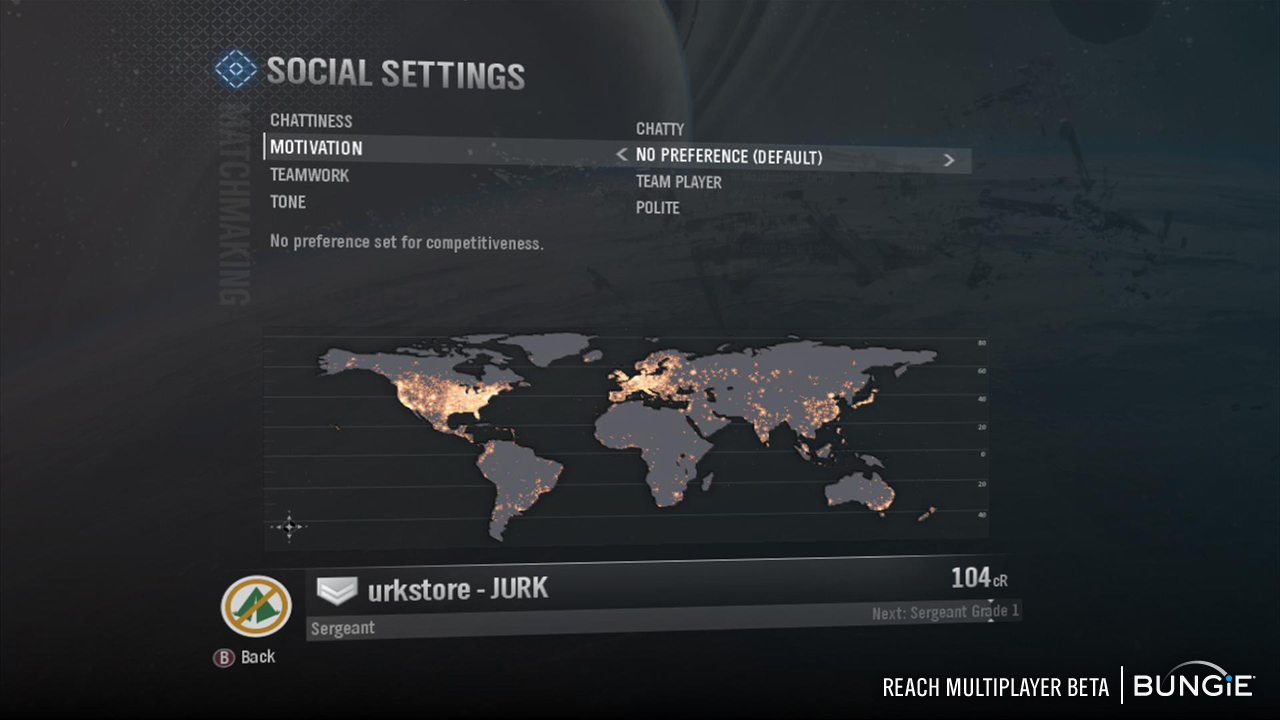 Bungie Weekly Update: 03.19.10Posted by urk at 3/19/2010 3:38 PM PDTWe got some 'splainin' to do. First things first, if you're struggling to grasp a lot of the shiny new information Shacknews just dropped on your awestruck and bewildered face, don't freak out. Stay with me. We're gonna get through this. I promise. It'll help if you can briefly divorce yourself from the context of Halo 3's existing matchmaking experience. For the purposes of this discussion, all that baggage is just gonna slow us down. Stow those preconceived personal items in the overhead compartment, bring your chair to the upright position, and fasten your safety belt. We're about the make some abrupt altitude adjustments. For example: Ranked vs. Social? Doesn't exist in Reach. It's gone. We've got something better on tap. The New StandardNote: for this portion of the update we're gonna be working from a purely hypothetical standpoint. To properly explain Reach's matchmaking options without giving away too many secretz and without cementing any ideas permanently into your impressionable noggins, we gotta play a little bit fast and loose. Details, as always, are subject to change. Don't form any lasting attachments. Ready? Let's say you want to play some Team Objective with three of your friends. Neat-o! You can do that. From the title screen, select Main Menu, then Matchmaking, and use your Active Roster to form or join your squad (more on that later). Once you've tinkered with all the options, select a Playlist and then choose Team Objective from the list of awesome options. Matchmaking will then begin its search for a suitable party to pair you with. Since you're operating in a 4v4 list, you don't need to worry about being split and since you're in a preformed party, matchmaking is gonna do its very best to pair you up with another party of four in the interest of fair play. That bit you read over at Shacknews about parties being ravenously torn apart would only pertain here if you had a party larger than this particular Playlist's team size allows. (Because you can't have like six dudes on a four man team, dig?) You don't worry to sweat the calculations though - complex algorithms ensure that these maths don't ever get fuzzy. If you're going it alone, or going in with a party smaller than the max team size, matchmaking will initially try to find players and parties of similar constitution to pair you with. Oh, and through ALL of these scenarios, we're using an updated version of Trueskill to ensure fair and competitive matches even though it's not being displayed or being used to inform your "rank" anymore. Trust us, it's there. We've also got a brand new system in place that'll give you an idea of each player's overall, game wide experience at a glance. Something completely divorced from your Arena rating altogether. The concept of per-playlist EXP/Military Rank is going bye bye. So long, sucker. In its place, something we'll talk more about next week. (Yup, it has to do with both the Rank and cR designations you spy in the recent batch of screenshots.) Are You Not Entertained?Since Arena seems to be the source of much gnashing of teeth and general confusion, we figure we should pay it some extra special mind and clear up a few of the common misconceptions and concerns we've been seeing as well. Easy stuff first. As we've explained above, Arena is NOT the only set of Playlists on offer in Halo: Reach. It's not even Option A. And it's not the only competitive offering, either. Now that we know what Arena isn't, let's talk about what it is. Arena is designed to foster ultra competitive matches focused on skill, individual performance, and personal bragging rights. If you don't have a single competitive bone in your body, you should probably steer clear. Most of the players in this list will be looking to break those bones and then beat you over the head with 'em. Okay, so it's not that serious, but yeah, the Arena is all about providing a level playing field for players looking to put their skills to the ultimate test. It's about finding out who really is the best slayer when many of the more "random" external factors have been stripped away and the underlying ability to put bullet on pixel is all that's left. That also means the primary experience will likely be primarily Spartan vs. Spartan, will sometimes feature Elite vs. Elite, and seldom (or never) will it intertwine the two. The differences between the two species character models and unique health, shield, and speed attributes are significant enough to call into question whether or not the mixture could ever be considered fair. But the Arena isn't rigid and monolithic. We can change and tweak the settings as we roll from season to season, which will help ensure the experience remains both fresh and fair. And yeah, right now it's Slayer only. Objective includes too many intangibles that make rating a player's performance problematic. The Short & SweetThe Arena is ongoing, it's seasonal, and you'll be ranked amongst your peers according to your individual performance. The Arena ranking is only applicable to the Arena, which means your Daily Rating, current Division standing, and historical Seasonal performance will have no impact on non-Arena Playlists. Indian Ocean. Present Day.Luke's not so subtle tease from earlier in the year makes a little more sense now, eh? The internal analogy for the Arena comes from Top Gun and, more specifically, from the "Greenie Board" employed by Naval pilots. In the real world, no matter your military rank, the only thing that matters on the Greenie Board is the execution of each individual landing. In the case of Arena, that's your individual play. Does that mean team play isn't important? Nope. It's intrinsic. If you want to hole up all by your lonesome or go totally Rambo, you're not utilizing your resources effectively. And your rating will certainly reflect your poor judgment if the other team capitalizes on your selfish pl