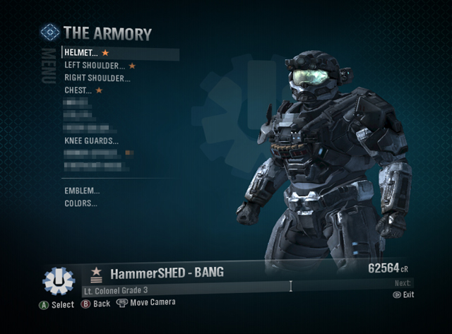 Pressing A on any of the highlighted categories on the left side of the screen will drill users into a stats castle an order of magnitude larger than anything we've ever shown in game. This screen in particular is dynamically sorting the user's Commendation progress, elevating the most advanced Commendations to the top of the screen. In this case, the user has only played multiplayer matchmaking, but if they had Commendation progress in other modes, those would be sprinkled throughout this screen. Like Halo 3, you'll be able to look at other player's Service Records and panes like this one, or the mode-specific Commendations breakdown will provide quick and dirty playstyle tendencies for your friends and foes. A mountain of dudes, including engineers Brad Fish, Michael Williams, Gareth Lough and UI designers Dave Candland and Andrew Davis - along with some sweet, sweet iconography work from Stoshy - got the Service Record to the state it's in. Arming the ArmoryIn addition to the Service Record getting a lot of love, the Armory is now fully locked and loaded and jam packed with sweet cosmetic upgrades. Everything is now fully integrated with final name and description. Here's a tantalizing glimpse of what awaits: