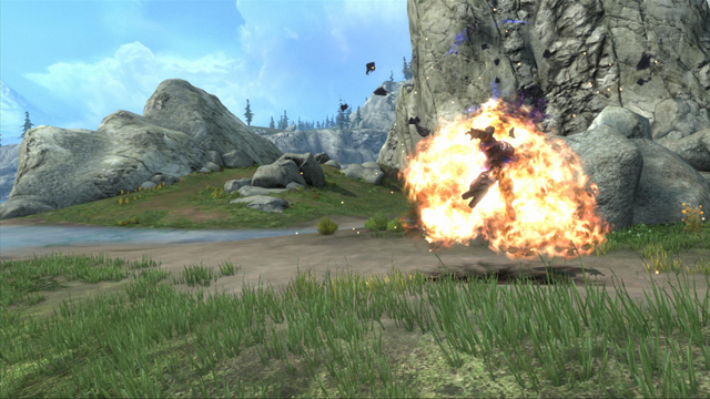 Next Stop, Space!A few curious forum-goers requested that we show off a custom version of Noble Six in a campaign cinematic. Almost as if they didn't believe we'd really swap out the default character model with a hot, custom Armory injection. Well, how 'bout now? ![]() Aren't you a little short for a...never mind. ![]() Crotch Cam! Not too sure about all the Spartan up-skirt action in that last shot, but that should seal the deal if you didn't believe our cinematics team would really make it happen. Plus, it gave me an excuse to spend some more time flying around in space. Win, win. Came From BehindNobody asked to see this, but I did notice some oohs and awes over some recently released game footage that shows off a couple of the new assassinations that our amazing animators worked into Reach. You got a taste of some of these kick ass coups de grace in the multiplayer beta back in May, but that was but a mere sampling of the final carnage count. According to animation producer Matt Richenburg, all told there are over forty custom assassinations packed into the shipping product, most multiplayer, some specific to campaign. Many of them are contextually based upon you and your opponent's position (an aerial assassination is very different than a ground and pound), and a few even depend on whether or not you have some ceremonial plasma in your hot little hands. Like so: ![]() Came From Behind! Space RaceI keep telling Derek I want to show off all of his hard work with an honest to goodness Race-travaganza multimedia blowout. He thinks I'm yanking his crank. I'm not. I know full well that as soon as we show off some rip roaring, high velocity, all terrain action our pre-order metrics are gonna rocket upwards like so much dirt rooster-tailing from the spinning rear wheels of my brand new M274 ULATV. But even though Derek still doesn't believe me and I've yet to secure stage time at a major press event or any airtime on network television, I do have access to a build of Halo: Reach. Gentlemen, start your engines! ![]() Racy! Those who played copious amounts of Halo: CE over LAN are likely already familiar with both Race and Rally. Bam! What's old is new again, and both gametypes are built right in to Reach. ![]() Spire is BIG. The standard rules for Race are simple. Drive towards and through the personal checkpoints highlighted in your HUD, and keep driving until you win. The customized Race HUD will track gate information, lap times, speed (the future is kilometers), time remaining, and what position you're in (if you ain't first, you're last). ![]() In the pipe! Another interesting wrinkle our good man Derek laid down to make Race all the more interesting: landmines. Landmines: an InterludeWhat's a landmine? Should be obvious, right? A small, metal platter with a flashing red bulb perched on top like a violent, blood-soaked maraschino cherry on a death-dealing sundae. You'd have to be some kind of moran not to instantly know you need to steer clear.