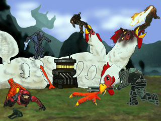 I understand if you never want to speak to me again. I've Got a Jet Pack!If you've made it this far, I applaud your dedication and cast iron stomach. Though the Jet Pack screenshots are indeed sweet, I fear they will not be sweet enough to rid your mouth of the bitter taste of Chickenpede. Still, we must go on. Feel free to click on any of the Jet Pack screenshots to check out the high resolution version. I'll spare you the higher resolution versions of Chickenpede. I can't, in good conscience, subject you to them. Seven stars again this week. I'll dole them out within the hour. More to come next week. Blame StoshStosh has been busy prepping Bungie.net for the release of the Defiant Map Pack. Yet, he still makes time for you. He loves you and he toils only for your entertainment. Be good. See you next week. |