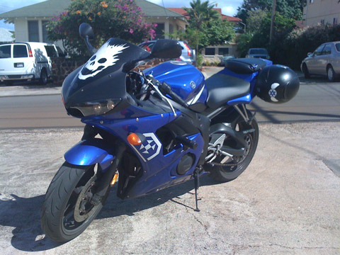 It's reflective, too. Imagine that skull coming at you in the dark at 60mph.