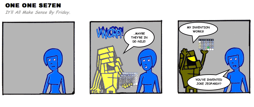 On April 30, 2003, Stuntmutt began turning in episodes of a new comic known as One One Se7en. We'll present them here, in the order in which they were submitted, as they come in. New submissions were added Monday, Wednesday, and Friday. On March 3, 2008, One One Se7en was retired from regular releases - Stunt's life got a tad too busy for 3 strips per week. (He still comes by with new content when the situation arises, however.)