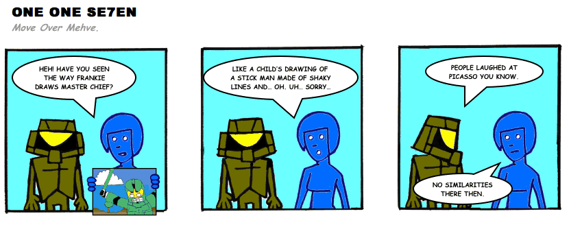 On April 30, 2003, Stuntmutt began turning in episodes of a new comic known as One One Se7en. We'll present them here, in the order in which they were submitted, as they come in. New submissions were added Monday, Wednesday, and Friday. On March 3, 2008, One One Se7en was retired from regular releases - Stunt's life got a tad too busy for 3 strips per week. (He still comes by with new content when the situation arises, however.)