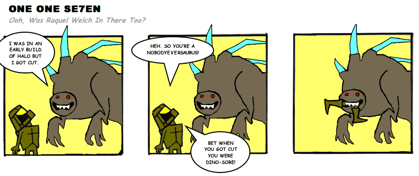 On April 30, 2003, Stuntmutt began turning in episodes of a new comic known as One One Se7en. We'll present them here, in the order in which they were submitted, as they come in. New submissions were added Monday, Wednesday, and Friday. On March 3, 2008, One One Se7en was retired from regular releases - Stunt's life got a tad too busy for 3 strips per week. (He still comes by with new content when the situation arises, however.)
