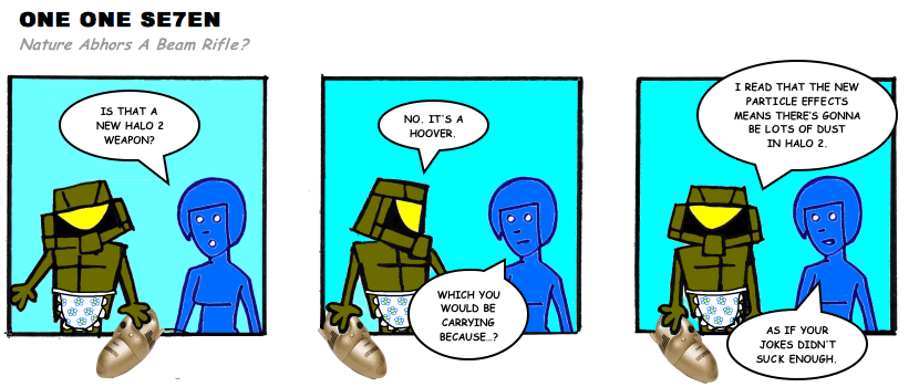 On April 30, 2003, Stuntmutt began turning in episodes of a new comic known as One One Se7en. We'll present them here, in the order in which they were submitted, as they come in. New submissions were added Monday, Wednesday, and Friday. On March 3, 2008, One One Se7en was retired from regular releases - Stunt's life got a tad too busy for 3 strips per week. (He still comes by with new content when the situation arises, however.)