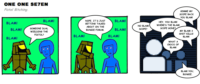 On April 30, 2003, Stuntmutt began turning in episodes of a new comic known as One One Se7en. We'll present them here, in the order in which they were submitted, as they come in. New submissions were added Monday, Wednesday, and Friday. On March 3, 2008, One One Se7en was retired from regular releases - Stunt's life got a tad too busy for 3 strips per week. (He still comes by with new content when the situation arises, however.)