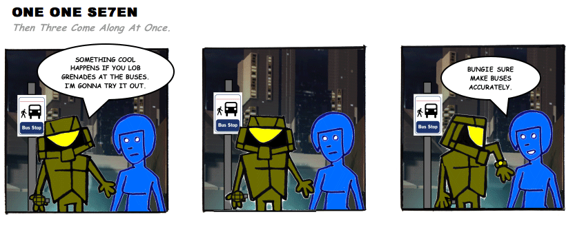 On April 30, 2003, Stuntmutt began turning in episodes of a new comic known as One One Se7en. We'll present them here, in the order in which they were submitted, as they come in. New submissions were added Monday, Wednesday, and Friday. On March 3, 2008, One One Se7en was retired from regular releases - Stunt's life got a tad too busy for 3 strips per week. (He still comes by with new content when the situation arises, however.)