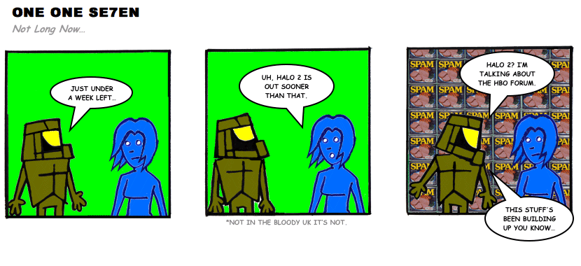 On April 30, 2003, Stuntmutt began turning in episodes of a new comic known as One One Se7en. We'll present them here, in the order in which they were submitted, as they come in. New submissions were added Monday, Wednesday, and Friday. On March 3, 2008, One One Se7en was retired from regular releases - Stunt's life got a tad too busy for 3 strips per week. (He still comes by with new content when the situation arises, however.)
