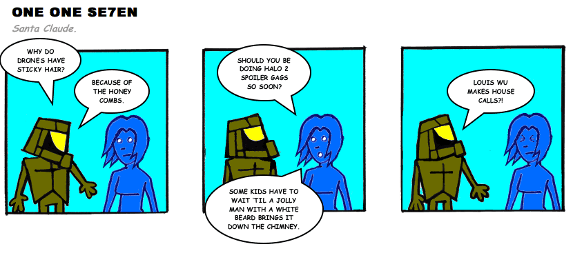 On April 30, 2003, Stuntmutt began turning in episodes of a new comic known as One One Se7en. We'll present them here, in the order in which they were submitted, as they come in. New submissions were added Monday, Wednesday, and Friday. On March 3, 2008, One One Se7en was retired from regular releases - Stunt's life got a tad too busy for 3 strips per week. (He still comes by with new content when the situation arises, however.)