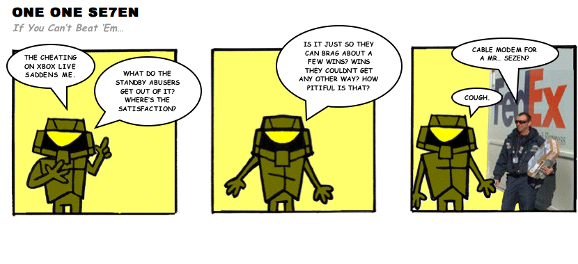 On April 30, 2003, Stuntmutt began turning in episodes of a new comic known as One One Se7en. We'll present them here, in the order in which they were submitted, as they come in. New submissions were added Monday, Wednesday, and Friday. On March 3, 2008, One One Se7en was retired from regular releases - Stunt's life got a tad too busy for 3 strips per week. (He still comes by with new content when the situation arises, however.)