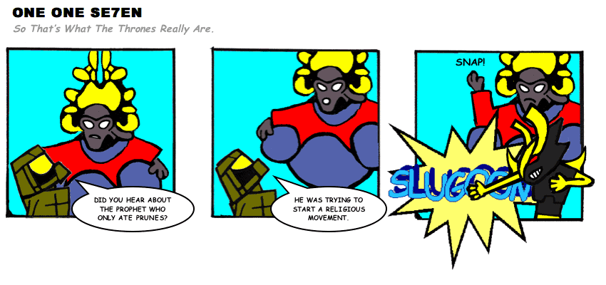 On April 30, 2003, Stuntmutt began turning in episodes of a new comic known as One One Se7en. We'll present them here, in the order in which they were submitted, as they come in. New submissions were added Monday, Wednesday, and Friday. On March 3, 2008, One One Se7en was retired from regular releases - Stunt's life got a tad too busy for 3 strips per week. (He still comes by with new content when the situation arises, however.)
