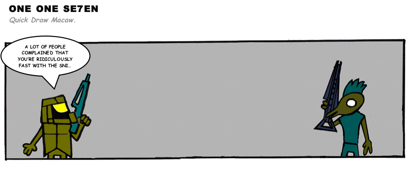On April 30, 2003, Stuntmutt began turning in episodes of a new comic known as One One Se7en. We'll present them here, in the order in which they were submitted, as they come in. New submissions were added Monday, Wednesday, and Friday. On March 3, 2008, One One Se7en was retired from regular releases - Stunt's life got a tad too busy for 3 strips per week. (He still comes by with new content when the situation arises, however.)