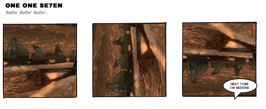 On April 30, 2003, Stuntmutt began turning in episodes of a new comic known as One One Se7en. We'll present them here, in the order in which they were submitted, as they come in. New submissions were added Monday, Wednesday, and Friday. On March 3, 2008, One One Se7en was retired from regular releases - Stunt's life got a tad too busy for 3 strips per week. (He still comes by with new content when the situation arises, however.)
