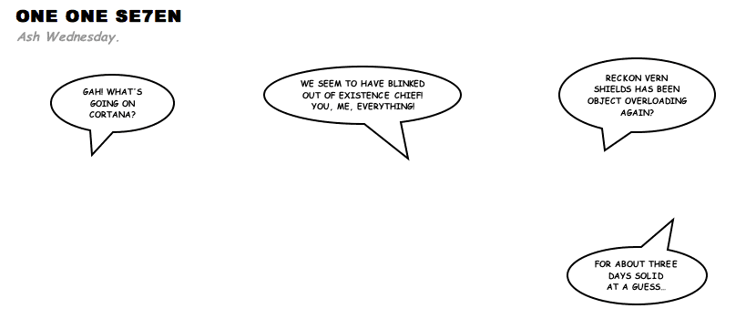 On April 30, 2003, Stuntmutt began turning in episodes of a new comic known as One One Se7en. We'll present them here, in the order in which they were submitted, as they come in. New submissions were added Monday, Wednesday, and Friday. On March 3, 2008, One One Se7en was retired from regular releases - Stunt's life got a tad too busy for 3 strips per week. (He still comes by with new content when the situation arises, however.)