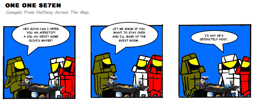 On April 30, 2003, Stuntmutt began turning in episodes of a new comic known as One One Se7en. We'll present them here, in the order in which they were submitted, as they come in. New submissions were added Monday, Wednesday, and Friday. On March 3, 2008, One One Se7en was retired from regular releases - Stunt's life got a tad too busy for 3 strips per week. (He still comes by with new content when the situation arises, however.)