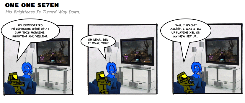 On April 30, 2003, Stuntmutt began turning in episodes of a new comic known as One One Se7en. We'll present them here, in the order in which they were submitted, as they come in. New submissions were added Monday, Wednesday, and Friday. On March 3, 2008, One One Se7en was retired from regular releases - Stunt's life got a tad too busy for 3 strips per week. (He still comes by with new content when the situation arises, however.)