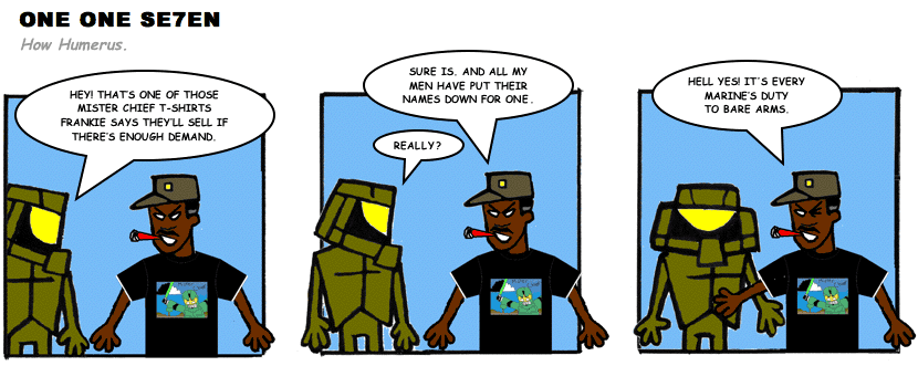 On April 30, 2003, Stuntmutt began turning in episodes of a new comic known as One One Se7en. We'll present them here, in the order in which they were submitted, as they come in. New submissions were added Monday, Wednesday, and Friday. On March 3, 2008, One One Se7en was retired from regular releases - Stunt's life got a tad too busy for 3 strips per week. (He still comes by with new content when the situation arises, however.)