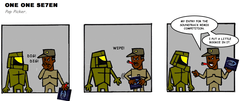 On April 30, 2003, Stuntmutt began turning in episodes of a new comic known as One One Se7en. We'll present them here, in the order in which they were submitted, as they come in. New submissions were added Monday, Wednesday, and Friday. On March 3, 2008, One One Se7en was retired from regular releases - Stunt's life got a tad too busy for 3 strips per week. (He still comes by with new content when the situation arises, however.)