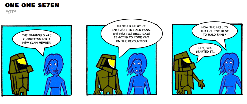 On April 30, 2003, Stuntmutt began turning in episodes of a new comic known as One One Se7en. We'll present them here, in the order in which they were submitted, as they come in. New submissions were added Monday, Wednesday, and Friday. On March 3, 2008, One One Se7en was retired from regular releases - Stunt's life got a tad too busy for 3 strips per week. (He still comes by with new content when the situation arises, however.)
