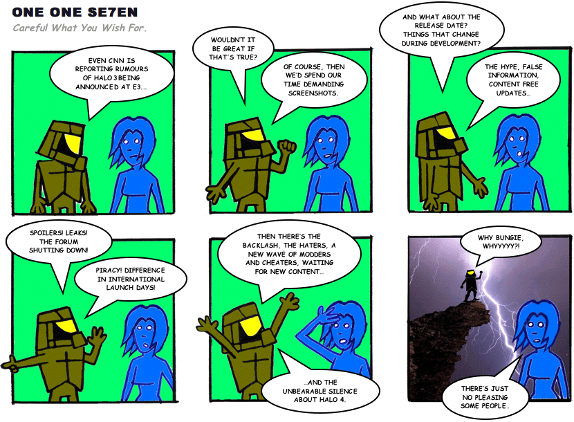 On April 30, 2003, Stuntmutt began turning in episodes of a new comic known as One One Se7en. We'll present them here, in the order in which they were submitted, as they come in. New submissions were added Monday, Wednesday, and Friday. On March 3, 2008, One One Se7en was retired from regular releases - Stunt's life got a tad too busy for 3 strips per week. (He still comes by with new content when the situation arises, however.)