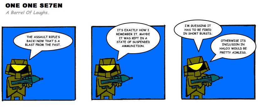 On April 30, 2003, Stuntmutt began turning in episodes of a new comic known as One One Se7en. We'll present them here, in the order in which they were submitted, as they come in. New submissions were added Monday, Wednesday, and Friday. On March 3, 2008, One One Se7en was retired from regular releases - Stunt's life got a tad too busy for 3 strips per week. (He still comes by with new content when the situation arises, however.)