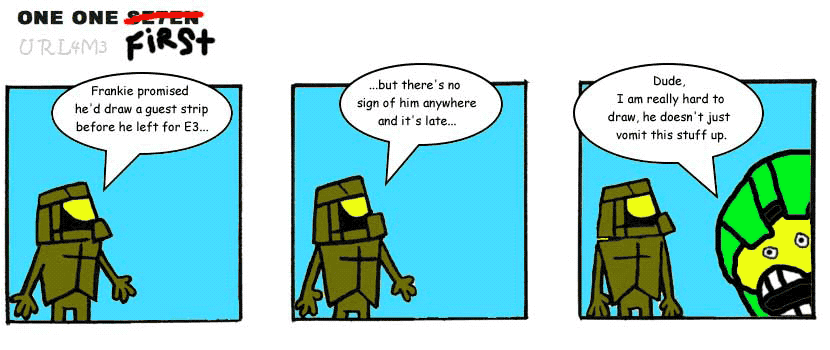 On April 30, 2003, Stuntmutt began turning in episodes of a new comic known as One One Se7en. We'll present them here, in the order in which they were submitted, as they come in. New submissions were added Monday, Wednesday, and Friday. On March 3, 2008, One One Se7en was retired from regular releases - Stunt's life got a tad too busy for 3 strips per week. (He still comes by with new content when the situation arises, however.)