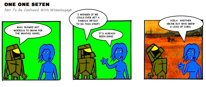 On April 30, 2003, Stuntmutt began turning in episodes of a new comic known as One One Se7en. We'll present them here, in the order in which they were submitted, as they come in. New submissions were added Monday, Wednesday, and Friday. On March 3, 2008, One One Se7en was retired from regular releases - Stunt's life got a tad too busy for 3 strips per week. (He still comes by with new content when the situation arises, however.)