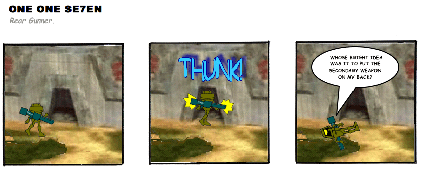 On April 30, 2003, Stuntmutt began turning in episodes of a new comic known as One One Se7en. We'll present them here, in the order in which they were submitted, as they come in. New submissions were added Monday, Wednesday, and Friday. On March 3, 2008, One One Se7en was retired from regular releases - Stunt's life got a tad too busy for 3 strips per week. (He still comes by with new content when the situation arises, however.)
