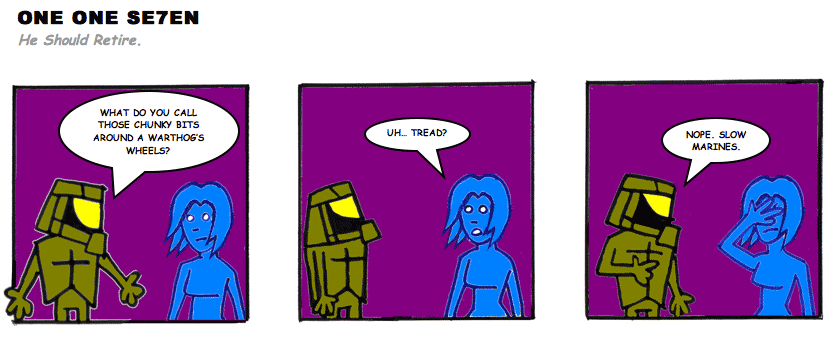 On April 30, 2003, Stuntmutt began turning in episodes of a new comic known as One One Se7en. We'll present them here, in the order in which they were submitted, as they come in. New submissions were added Monday, Wednesday, and Friday. On March 3, 2008, One One Se7en was retired from regular releases - Stunt's life got a tad too busy for 3 strips per week. (He still comes by with new content when the situation arises, however.)