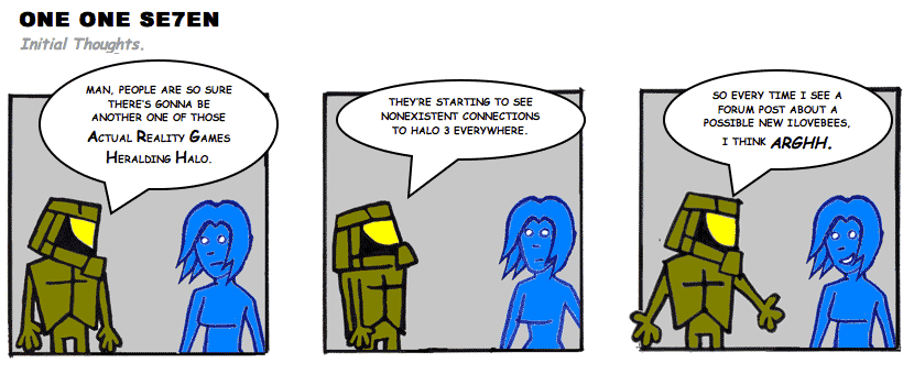 On April 30, 2003, Stuntmutt began turning in episodes of a new comic known as One One Se7en. We'll present them here, in the order in which they were submitted, as they come in. New submissions were added Monday, Wednesday, and Friday. On March 3, 2008, One One Se7en was retired from regular releases - Stunt's life got a tad too busy for 3 strips per week. (He still comes by with new content when the situation arises, however.)