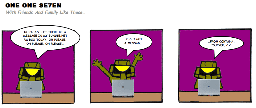 On April 30, 2003, Stuntmutt began turning in episodes of a new comic known as One One Se7en. We'll present them here, in the order in which they were submitted, as they come in. New submissions were added Monday, Wednesday, and Friday. On March 3, 2008, One One Se7en was retired from regular releases - Stunt's life got a tad too busy for 3 strips per week. (He still comes by with new content when the situation arises, however.)
