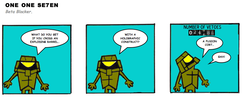 On April 30, 2003, Stuntmutt began turning in episodes of a new comic known as One One Se7en. We'll present them here, in the order in which they were submitted, as they come in. New submissions were added Monday, Wednesday, and Friday. On March 3, 2008, One One Se7en was retired from regular releases - Stunt's life got a tad too busy for 3 strips per week. (He still comes by with new content when the situation arises, however.)