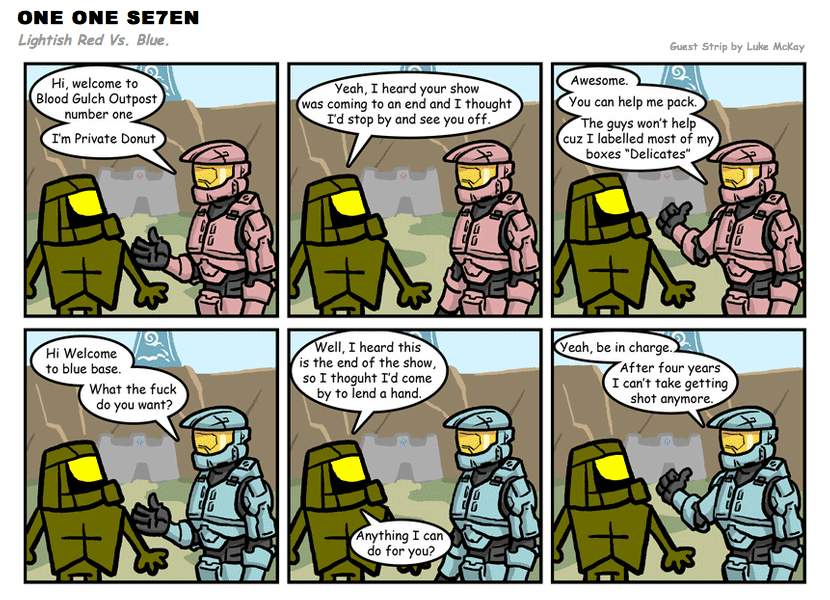 On April 30, 2003, Stuntmutt began turning in episodes of a new comic known as One One Se7en. We'll present them here, in the order in which they were submitted, as they come in. New submissions were added Monday, Wednesday, and Friday. On March 3, 2008, One One Se7en was retired from regular releases - Stunt's life got a tad too busy for 3 strips per week. (He still comes by with new content when the situation arises, however.)