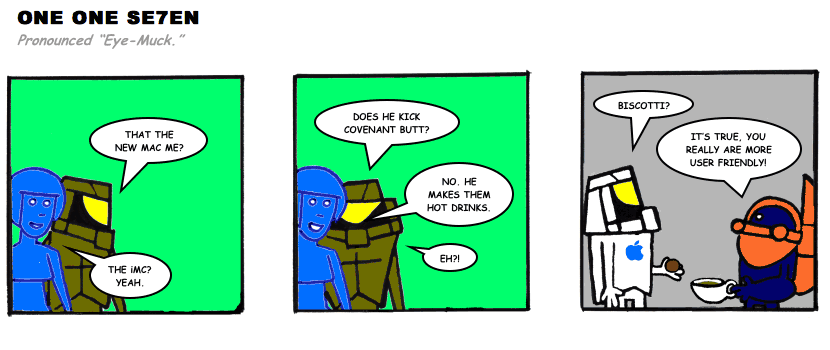 On April 30, 2003, Stuntmutt began turning in episodes of a new comic known as One One Se7en. We'll present them here, in the order in which they were submitted, as they come in. New submissions were added Monday, Wednesday, and Friday. On March 3, 2008, One One Se7en was retired from regular releases - Stunt's life got a tad too busy for 3 strips per week. (He still comes by with new content when the situation arises, however.)